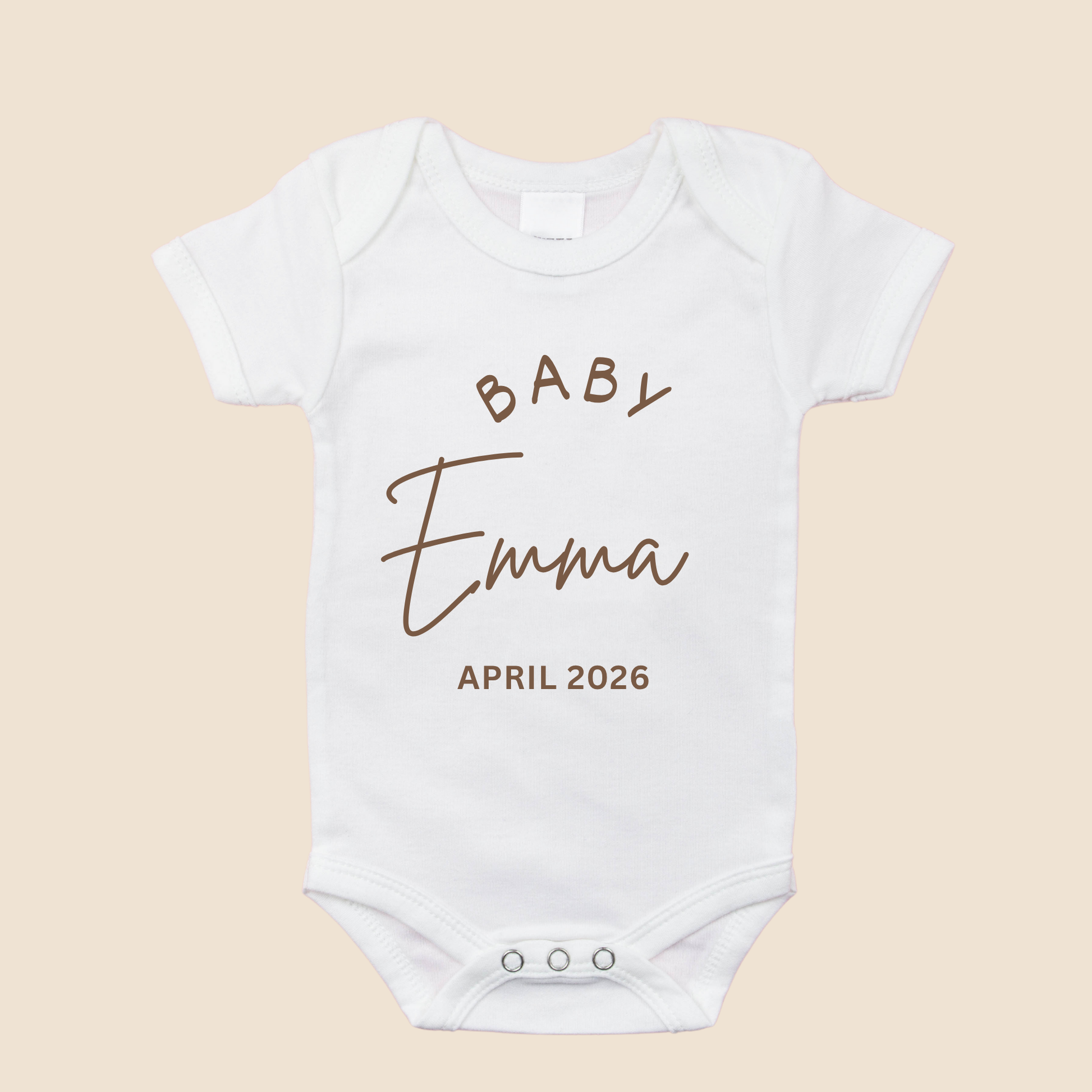 Announce your little one’s arrival in the sweetest way with our personalized baby bodysuit — a perfect keepsake for pregnancy reveals, baby showers, or newborn photo shoots.